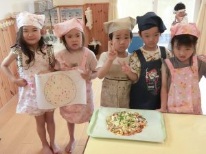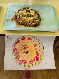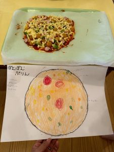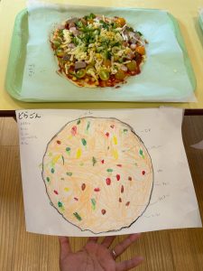 グループで1枚作るピザをまずは一人一人作ってみたいピザを考えていきました。