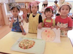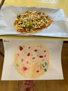 その後グループの意見を聞き合い1枚のピザにしていきました。