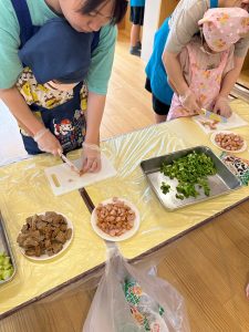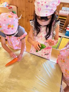生地ができたらトッピングの材料の野菜等を切っていきました。