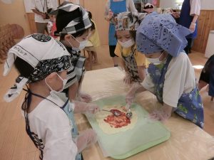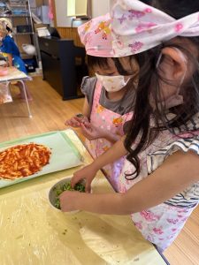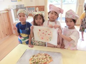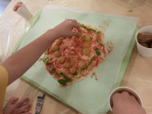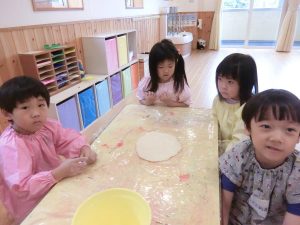 小麦粉粘土でピザ生地に見立てて作ってみたりしていました。