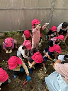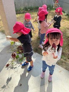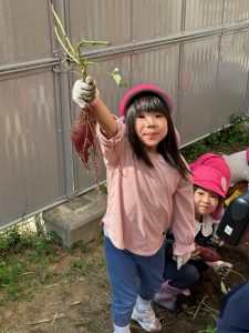 芋が見えると嬉しそうにお友達と掘っていました。