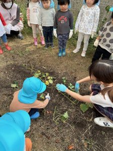 続いて3歳児ばら組の芋掘りです。