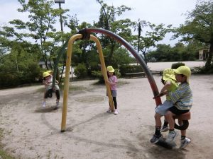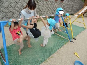 だんごむしを探したり鉄棒に挑戦したりしました。水遊びも楽しみましたよ。