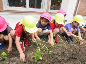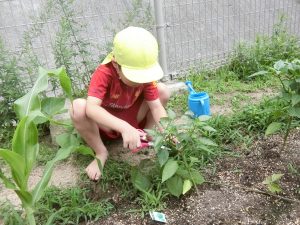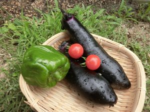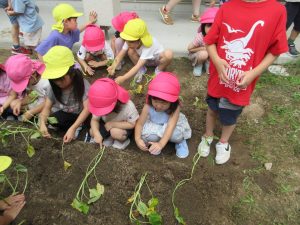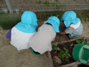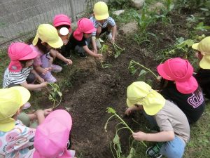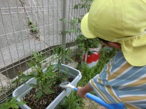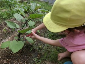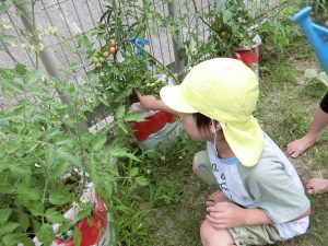 年長児が育てている夏野菜が生長し、どんどん収穫しています。