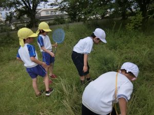 草むらの中に色々な虫がいて、みんなで協力して捕まえました。