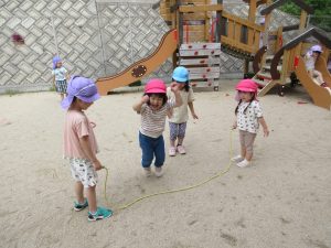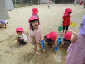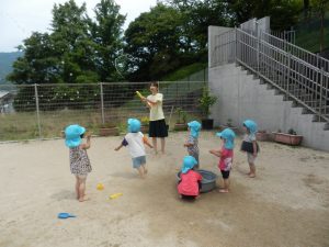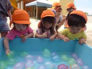 戸外では、身体を動かしたり、水遊びをしたりしました。