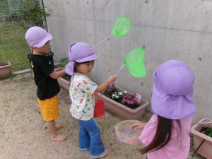 小学校のお兄さん、お姉さんと一緒に『虫見つけ』を楽しみました。