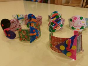 製作活動では、糊や花紙等を使い色々な作品を作りました。