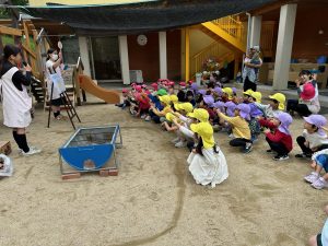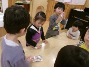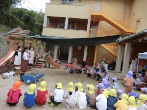 焼き芋会当日は、担当の職員から出し物を観ました。