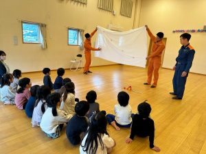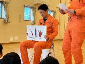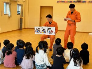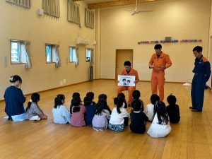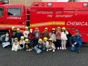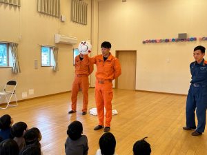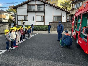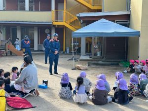 令和6年11月27日(水)廿日市市消防本部の取り組みとして消防署の方が来園され防火学習を行ってくれました。