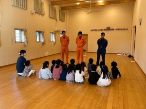 まずはいつも園内で行っている避難訓練の様子を観ていただきお話をしてもらいました。