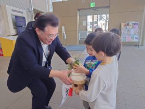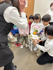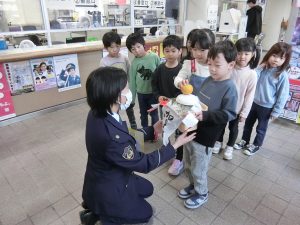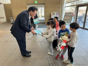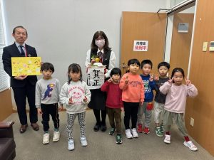 お鏡餅を今年も2グループに分かれて年長児が4か所(警察署・消防署・郵便局・市役所)に