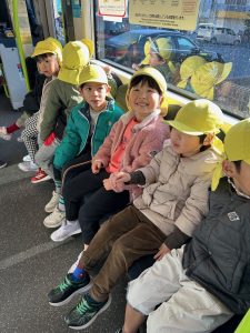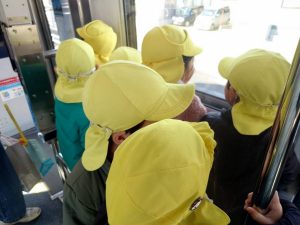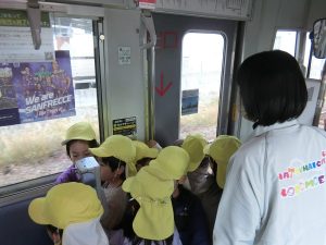 電車に乗って消防署まで行きました。