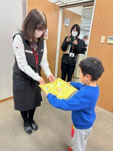 郵便局に到着!緊張していた様子でしたが挨拶もしっかりできました。