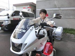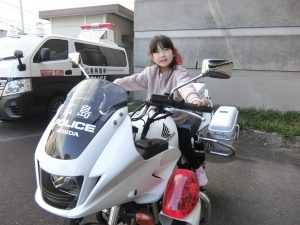 ご挨拶をして鏡餅を渡しパトカーや白バイに乗車させてもらいました。