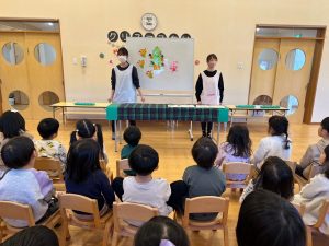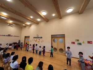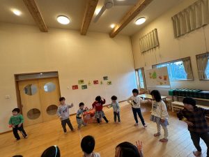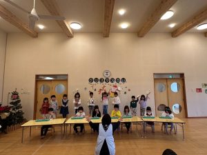プレゼントをもらったので、歌や合奏、リズムダンスでお礼をしました。