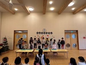 続いて、年長児の挨拶でクリスマス会が始まりました。