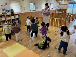 本来は2月2日が節分でしたが園内では3日に節分行事を楽しみました。