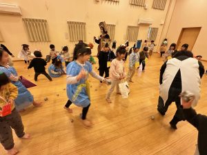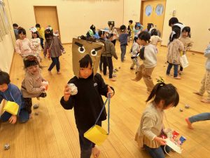その後先生からもお話を聞いて豆まきを楽しんでいました。