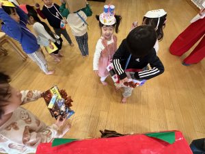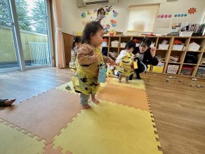 まずは0.1歳児クラスに変装したきく組のお友達の登場でしたが