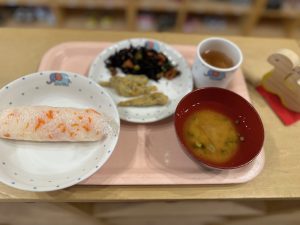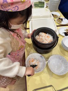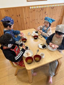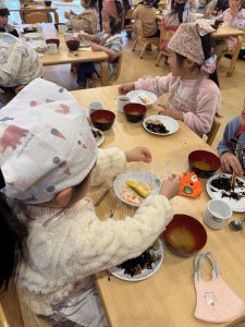「こうかな?」「できないな」等話しながら自分の恵方巻を作りました。