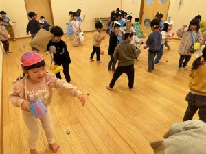 ふじ組でも鬼に向かって投げている子どもたちがいましたよ。