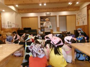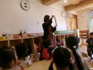 先生からの出し物は、『北風と太陽』のペープサートでした。