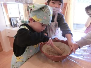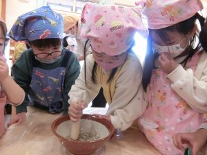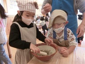 すり鉢とすりこぎの使い方を教えてもらってから作り始めました。