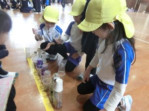 小学校からおもちゃランドに招待してもらいました。大きな体育館に沢山の手作りおもちゃが用意してありました。