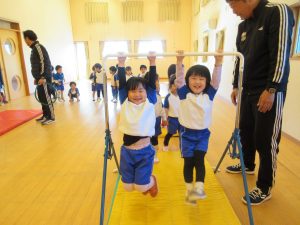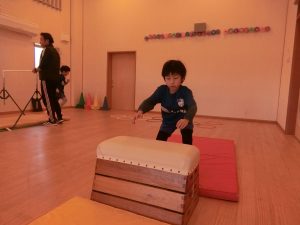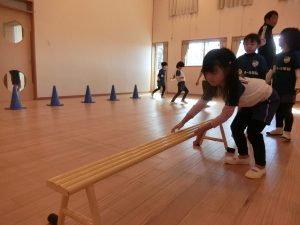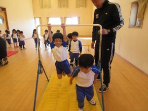 鉄棒や跳び箱、平均台やボール等を使い楽しんで身体を動かしました。