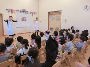 歯科検診が近づいてきたので、クラスで歯に関するお話をしました。