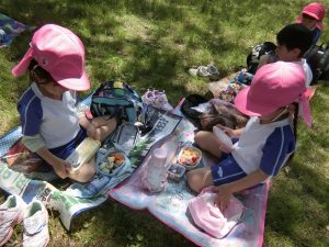 お家の人が作ってくれたお弁当を美味しくいただきました。