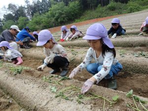 植えた芋は、10月に掘りに行きます。大きく育ちますように。