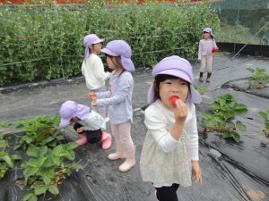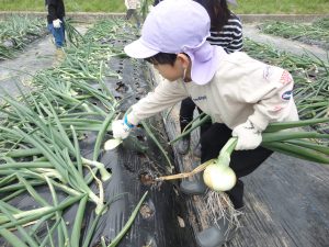 芋の苗植えや玉ねぎ掘り、いちご狩りやえんどう豆とりを体験させていただきました。
