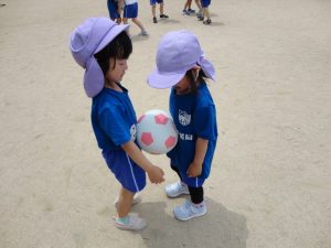 鉄棒やボール等を使い、一生懸命取り組んでいました。