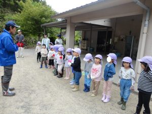 年長児が園庭の畑に夏野菜の苗を植えました。