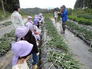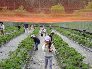 芋の苗植えや玉ねぎ掘り、いちご狩りやえんどう豆とりを体験させていただきました。