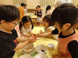 味比べでは、甘味・酸味・塩味・苦味を実際に味見しながらグループのお友だちと感想を言い合っていました。