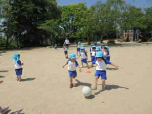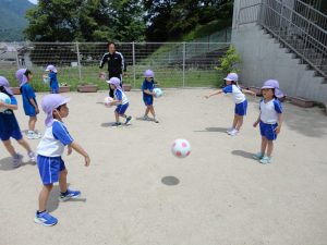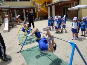 鉄棒やボール等を使い、一生懸命取り組んでいました。