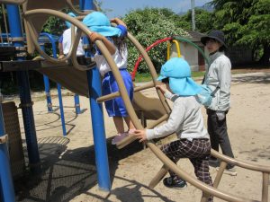 広いグランドでサッカーゲームをしたり、大きな遊具で沢山遊びました。