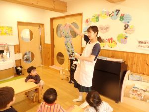 色々な具材が楽しい歌に合わせて登場し、子どもたちは一緒に口ずさんでいました。
