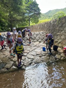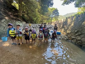 8月21日(木)宮島こども園の園児の方と川遊びを楽しみました。