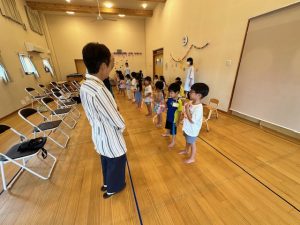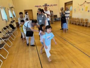 歌に合わせて動いてじゃんけんだんだんと長い列車になりました。